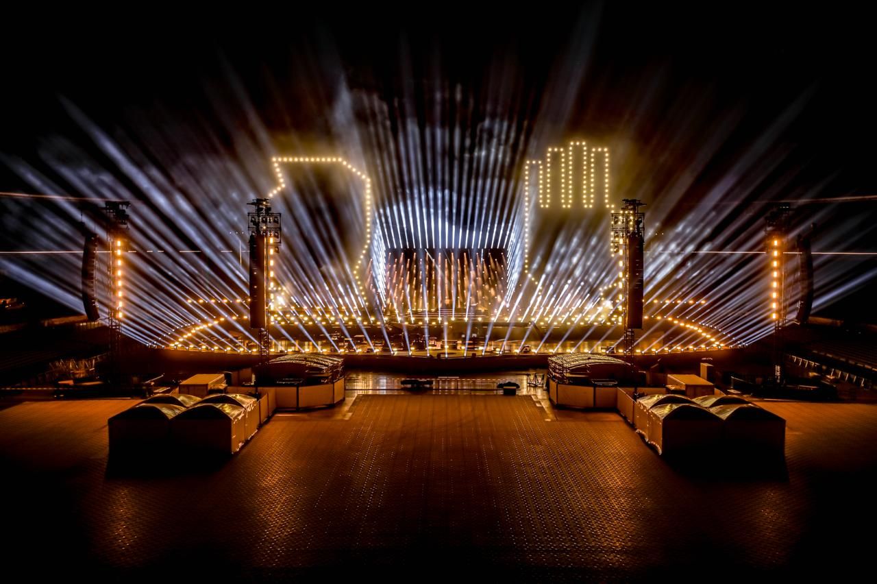 Once the design team was on site at De Kuip, they expanded their capabilities by bringing in two additional MQ500M units. These consoles were used to control the show’s extensive video element. (In addition to the two massive video walls, the production had video content running throughout the stage, often displayed on lighting fixtures.)