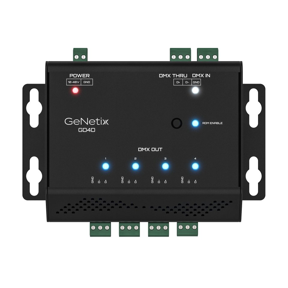 GeNetix Nodes provide a solution for remote data distribution in a wide variety of applications. Supporting industry standard protocols like Art-Net, sACN, RDM along with advanced features including DMX Fallback, Merging and Scene Storage